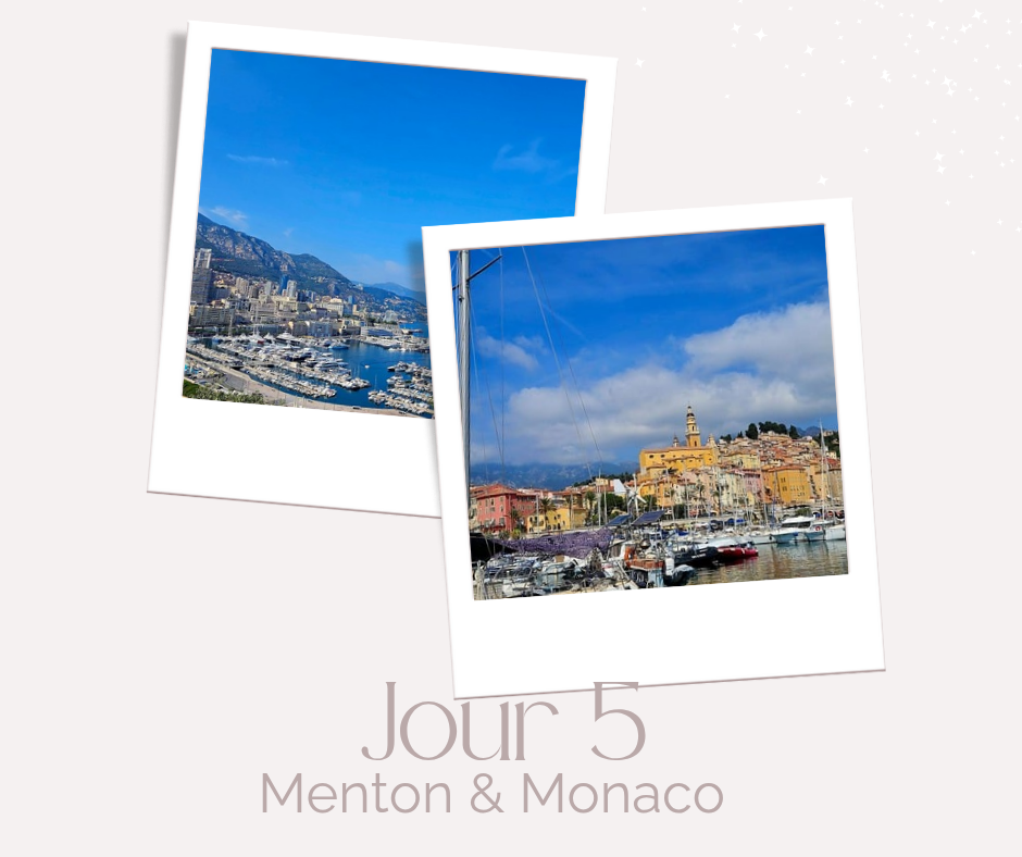 Aujourd’hui, direction Menton, la ville du citron surnommée « la perle de la France ». Nous nous sommes promenés dans les ruelles colorées de la ville tout en regardant les bâtiments aux façades pastel. Puis nous avons longé le bord de mer jusqu’au Phare de Menton tout en admirant la ville de loin ainsi que son port. Si vous avez le temps, allez découvrir le Jardin Serre de la Madone rempli de plantes exotiques rares ainsi que le Jardin Botanique du Val Rahmeh fleuri d’une grande variété de plantes tropicales et méditerranéennes. Pendant la fête du citron, allez explorer le Jardin Biovès pour découvrir ses sculptures d’agrumes impressionnantes.